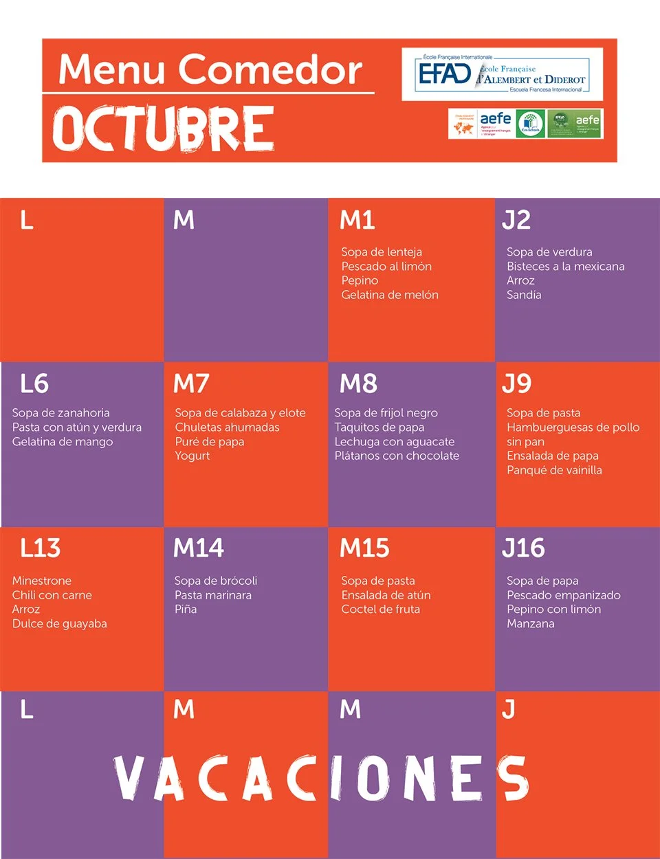 La EFAD ofrece un servicio de comedor. Las comidas son preparadas por la empresa La Mesa Está Puesta.